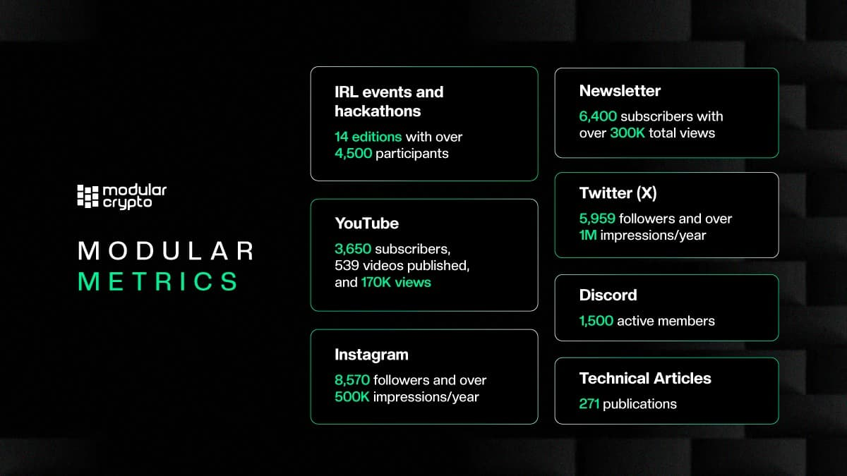 Modular Crypto is a Web3-native media, education, and governance organization with a strong presence in Latin America, particularly Brazil. We combine technical content, talent development, and in-person experiences to accelerate Web3 adoption and ensure that local voices are represented in global governance. Our work bridges communities and protocols through governance, education, and community engagement, consistently creating pathways for adoption and long-term ecosystem growth.